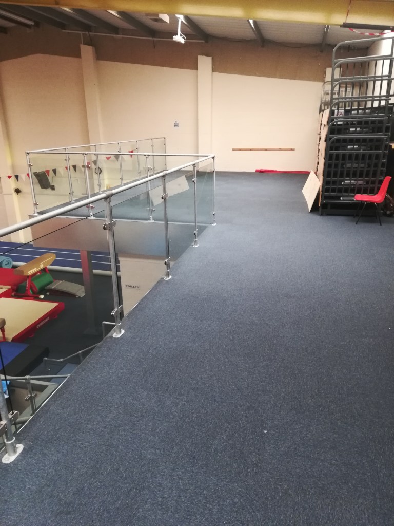 Olympic sized sprung floor, air track with landing area, vault run up, beam area including training beams, mezzanine floor for meetings and viewing for competitions and shows, purpose built sound & lighting system control deck for competitions and shows.